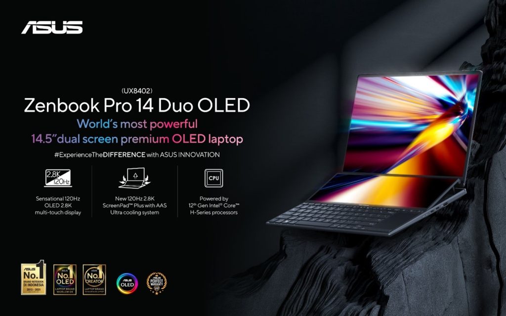 Halo para pecinta teknologi! ASUS Indonesia baru saja mengumumkan lini produk laptop terbaru mereka yaitu ASUS Zenbook Pro 14 Duo OLED (UX8402VU). Inovasi terbaru ini tidak hanya membawa spesifikasi yang powerful, tetapi juga desain layar ganda yang futuristik. Dengan kombinasi layar utama yang memukau dan ScreenPad™ Plus yang multifungsi, laptop ini dirancang untuk meningkatkan produktivitas dan kreativitas kamu ke level selanjutnya.